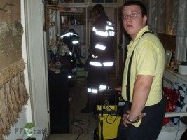 Als die Mannschaft des RLF-A 2000 am Einsatzort eintraf, wurde sie vom Wohnungsinhaber des 1. Obergeschoßes in seine überflutete Wohnung geführt. In der Wohnung darüber wird ein Rohrbruch vermutet. Der Bewohner im 2.OG reagierte nicht auf das Klopfen und Läuten der Feuerwehr, da er Taubstumm ist.
