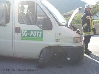 Ein Klein-LKW und ein PKW kollidierten seitlich beim Vorbeifahren. Beide kamen ca. 100m voneinander entfernt zu stehen. Die Unfallstelle wurde abgesichert und die fahruntauglichen Fahrzeuge von der Straße gezogen.