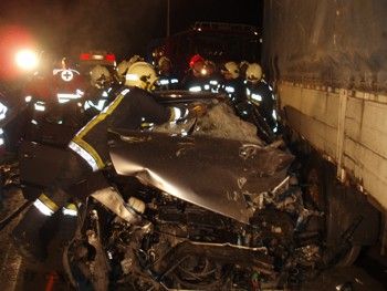 Ein PKW hatte sich seitlich unter einen Sattelzug gebohrt, wobei der PKW-Lenker unter dem Sattelzug eingeklemmt worden ist. Der Rettungsdienst war bereits mit einem Team vor Ort.