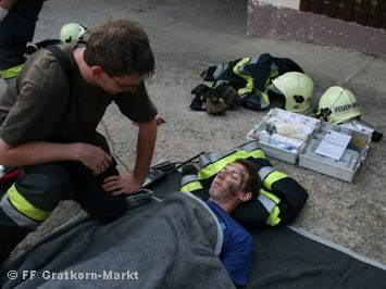 Am 30.05. führte die Freiwillige Feuerwehr Gratkorn-Markt ihre 3. Frühjahrsübung 2008 durch. Der Übungseinsatzbefehl lautete: „Wirtschaftsgebäudebrand in der Dornersiedlung“. Am Einsatzort angekommen rüstete sich die Mannschaft des TLF-A 3000/200 mit schwerem Atemschutz aus, während die restliche Mannschaft ein HD-Rohr zum Innenangriff vorbereitete. Gleichzeitig kamen bereits das RLF-A 2000 und das KRF-S am Einsatzort an. Die Fahrzeugbesatzung des RLF-A stellte den Rettungstrupp, und hatte gleichzeitig die Aufgabe einen Ölbehälter zu kühlen. Zur selben Zeit wurde bereits von der Mannschaft des KRF-S eine Zubringerleitung zum RLF-A und anschließend zum TLF-A hergestellt. Der Erste Atemschutztrupp konnte anschließend eine Person aus dem völlig verrauchten Stall retten, welche sogleich von unseren Feuerwehrsanitätern versorgt wurde. Nach dem der 1. Atemschutztrupp seine Aufgaben erledigt hatte, wurde der zweite Trupp zur Rettung einer Person aus dem Dachstuhl gerufen. Trotz extremen Platzmangels konnte auch dieses Opfer schnell gerettet werden. Nachdem alle Räume rauchfrei gemacht wurden konnte die Übung beendet werden. Übungsveranstalter: BM d.S. Zierler Gernot & FM Griesbacher Eva |