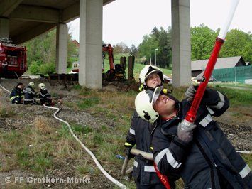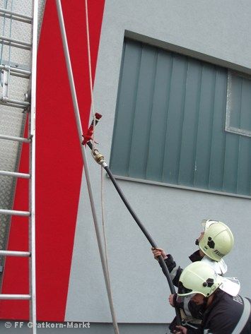 Ausbildungseinheit 7: Ein besonderes Dankschön gilt dem Seiltechik-Team um LMdS Andreas Zach, welcher die Sicherung unserer jungen Kollegen bei den ersten Gehversuchen mit der Hakenleiter vorgenommen hat. |