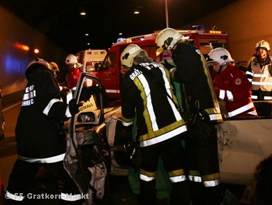 | Im Rahmen des ASFINAG Tunnelsicherheitsprogramm werden regelmäßig Katastrophenübungen in allen österreichischen Tunnelabschnitten durchgeführt. Am Samstag, dem 13.11.2010 organisierte die ASFINAG zusammen mit den verschiedenen Einsatzorganisationen eine dieser Übungen im Gratkorntunnel 1 auf der Phyrnautobahn. Übungsszenario war ein Verkehrsunfall mit 5 Fahrzeugen und 16 teilweise eingeklemmten Insassen. | |||||||||||