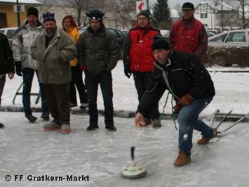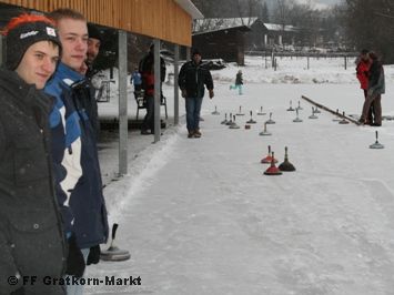 Am Heiligen drei Königs Tag, trafen wir uns wie jedes Jahr zum traditionellen Kameradschaftseisschießen in Deutschfeistritz. Unter der Führung der 4 „Moar“ HBI Thomas GLANNER mit Gemeinderätin Doris STEINSCHERER im grünen Team und OBI Heinrich STEYSKAL mit Vizebürgermeister Ernest KUPFER im rotem Team, begann die Auslosung der Teams. Gleich nachdem die zahlreich erschienenen 36 Schützen ihren Platz hatten, begann das kämpfen um die beste Stocklage. Beim ersten Durchgang wurde um die anschließende Verpflegung mit Speisen gespielt. Dabei konnte das grüne Team sich den Sieg mit einem klaren 5:0 sichern. Erst beim zweiten Durchgang in dem um die Getränke gespielt wurde, setzte sich der Kampfgeist beim roten Team durch. Und man beendete den Durchgang mit einem starken 0:3. Nun war es aber höchste Zeit für eine Stärkung der Teils durchgefrorenen Schützen und wir machten uns auf dem Weg zum Restaurant Jaritz. Bei der Ansprache von Vizebürgermeister Ernest KUPFER wurde die Leistung der Feuerwehr im vergangenen Jahr 2008, wie zum Beispiel bei Sturm Paula hervorgehoben und seitens des Gemeinderates ein Dank ausgesprochen.